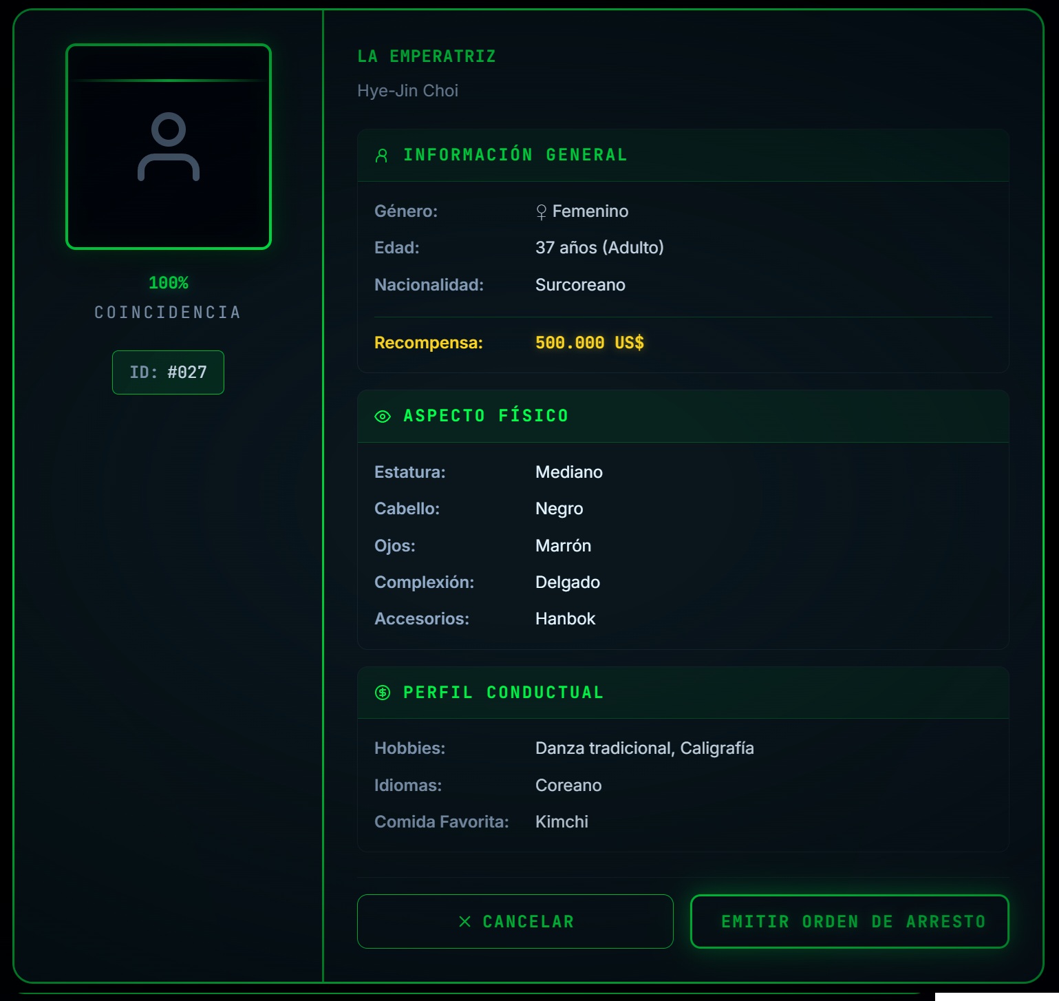 - DEDUCE - Use physical traits, hobbies, languages, and age to identify the criminal